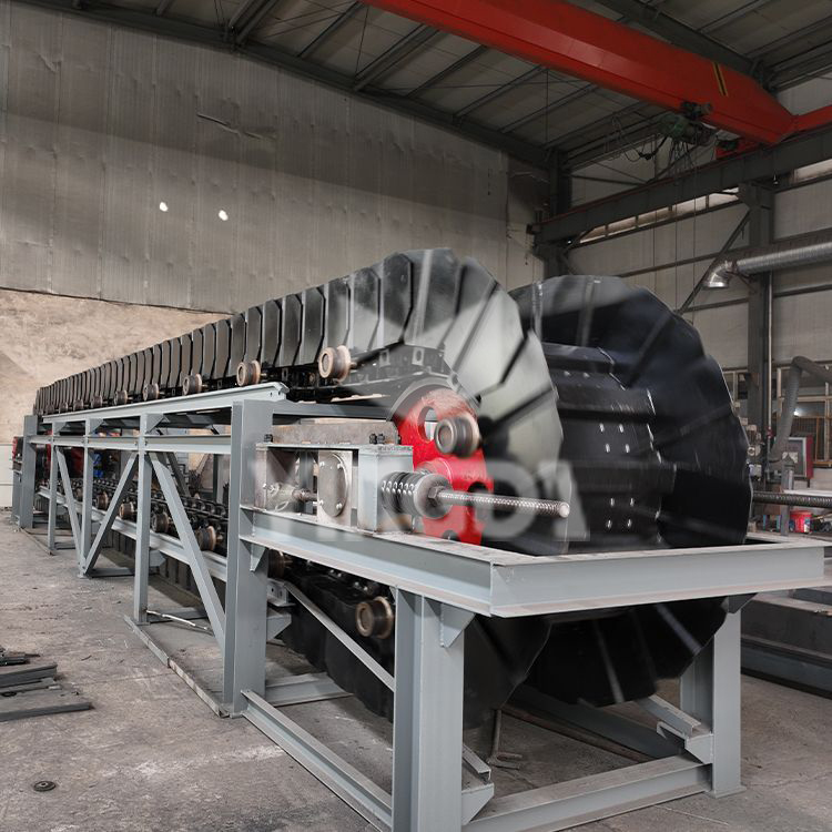 鏈斗機(jī)由高強(qiáng)度牽引鏈條、耐磨料斗、頭尾驅(qū)動輪組、箱體結(jié)構(gòu)及自動張緊系統(tǒng)構(gòu)成閉環(huán)輸送體系。其核心優(yōu)勢體現(xiàn)在:
